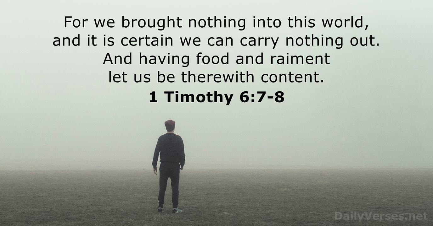 After all, we brought nothing with us when we came into the world, and we can’t take anything with us when we leave it. So if we have enough food and clothing, let us be content.