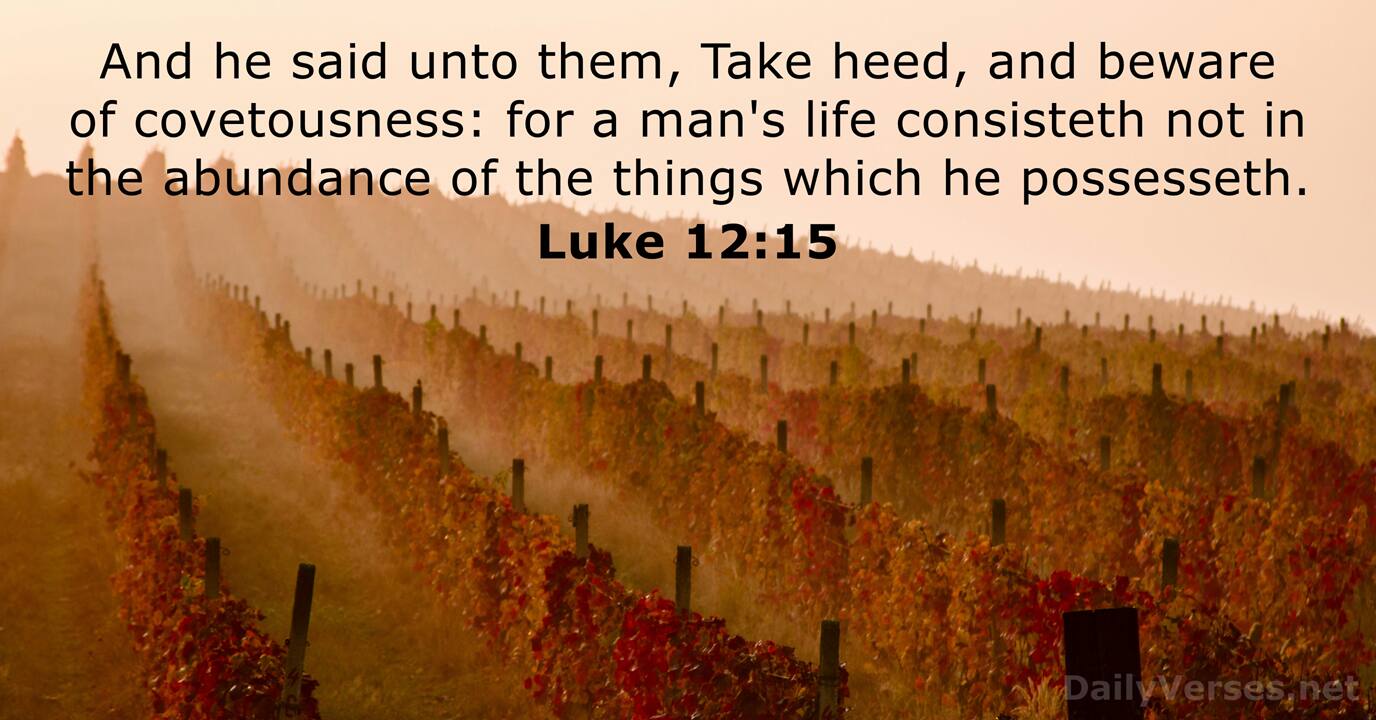 And He said to them, “Take heed and beware of covetousness, for one’s life does not consist in the abundance of the things he possesses.”
