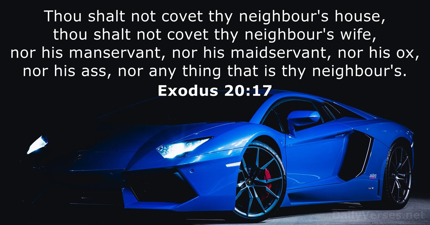 You shall not covet your neighbor’s house. You shall not covet your neighbor’s wife, nor his male servant, nor his female servant, nor his ox, nor his donkey, nor anything that is your neighbor’s.