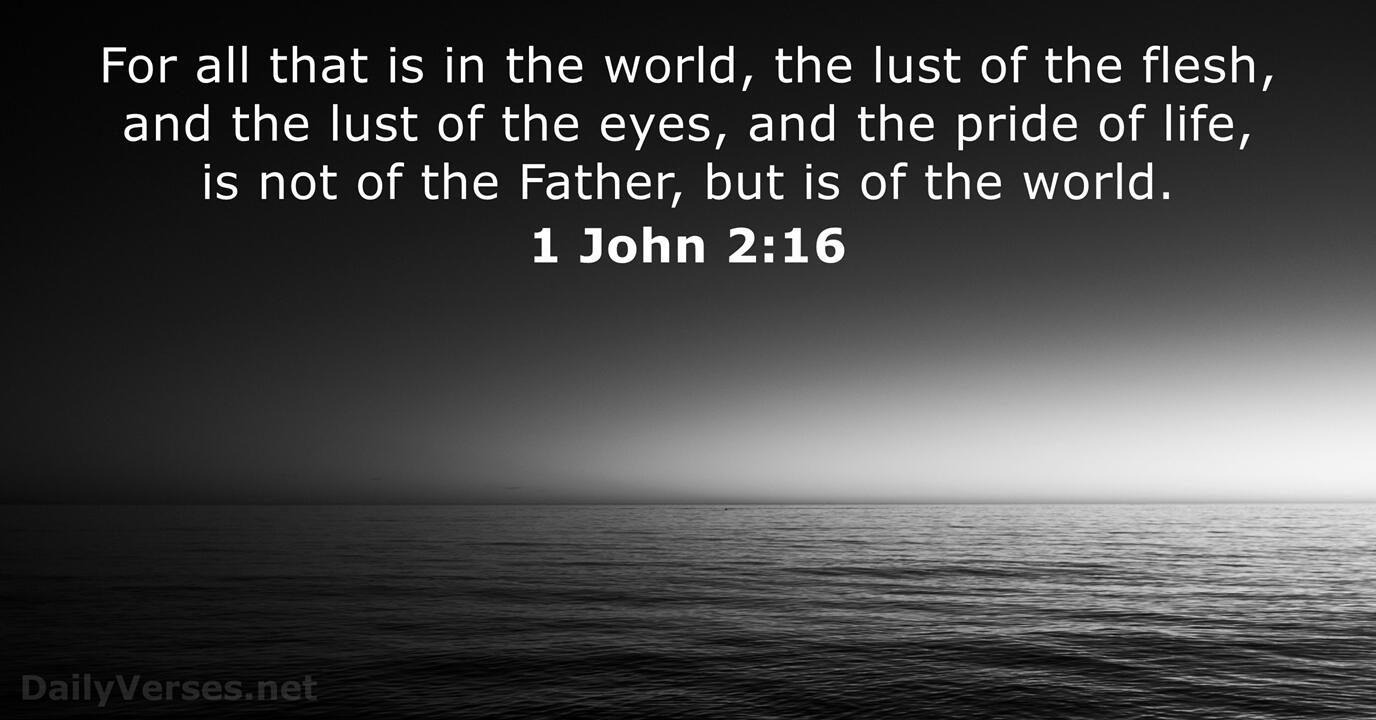 For all that is in the world, the lust of the flesh, and the lust of the eyes, and the pride of life, is not of the Father, but is of the world.