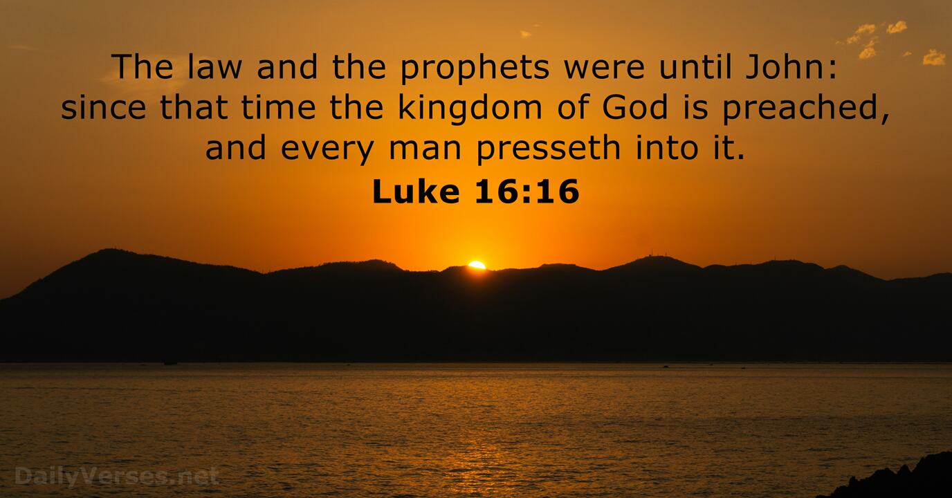 The law and the prophets were until John: since that time the kingdom of God is preached, and every man presseth into it.