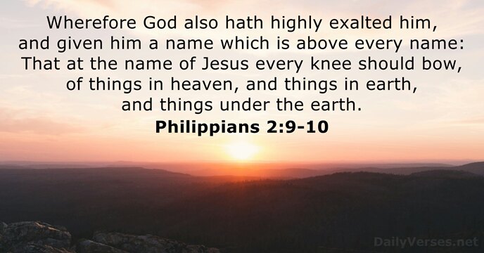 Wherefore God also hath highly exalted him, and given him a name which is above every name: That at the name of Jesus every knee should bow, of things in heaven, and things in earth, and things under the earth.
