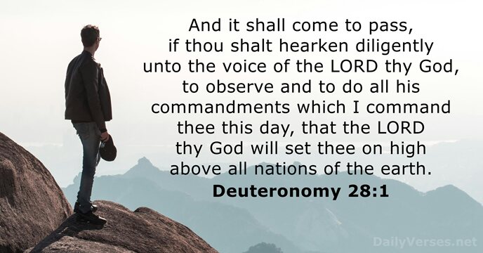 And it shall come to pass, if thou shalt hearken diligently unto the voice of the Lord thy God, to observe and to do all his commandments which I command thee this day, that the Lord thy God will set thee on high above all nations of the earth.