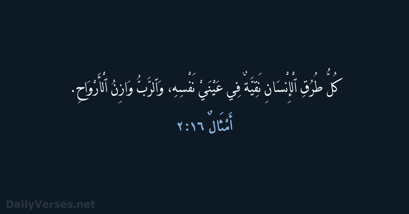كُلُّ طُرُقِ ٱلْإِنْسَانِ نَقِيَّةٌ فِي عَيْنَيْ نَفْسِهِ، وَٱلرَّبُّ وَازِنُ ٱلْأَرْوَاحِ.