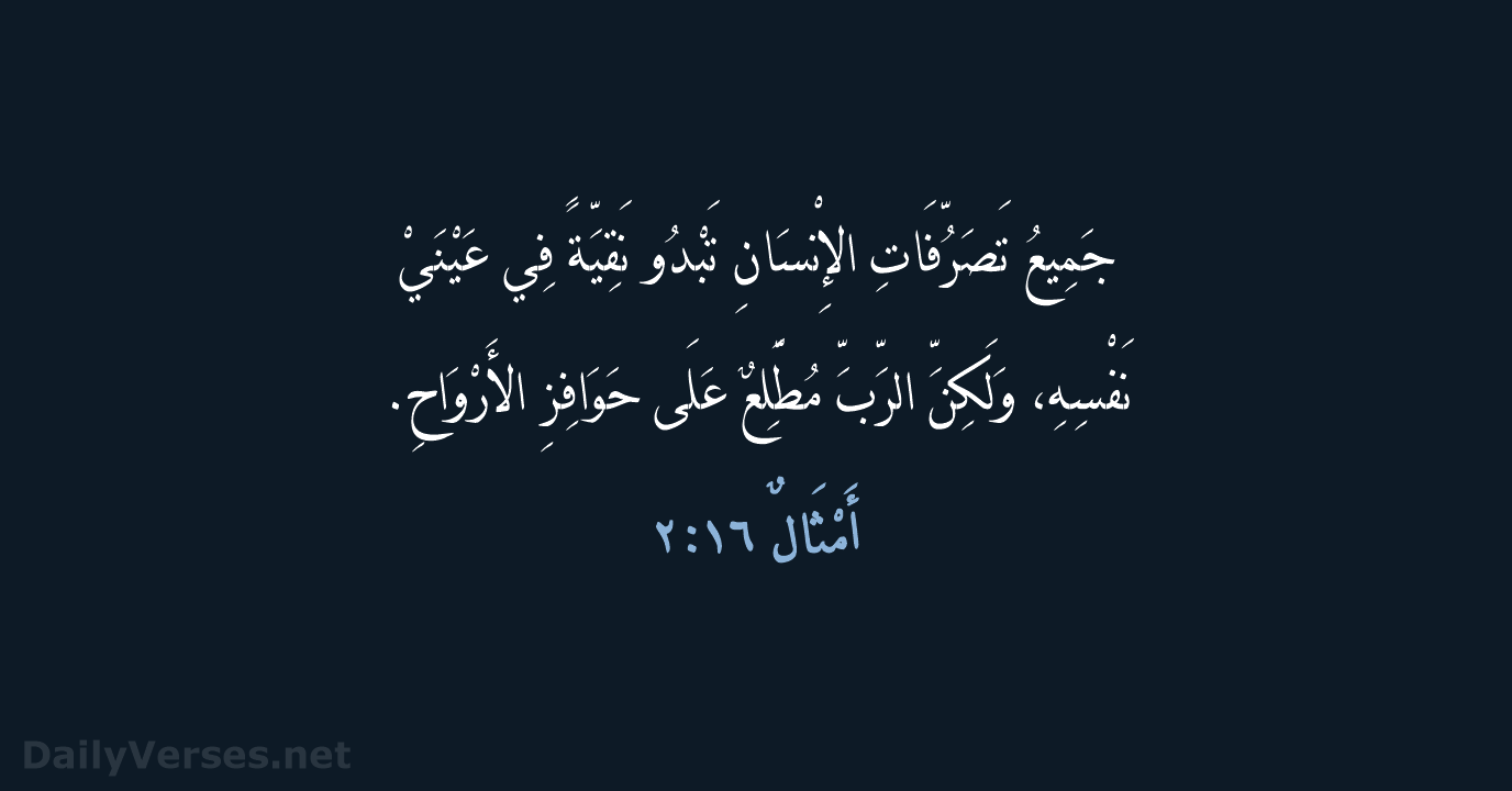 كُلُّ طُرُقِ ٱلْإِنْسَانِ نَقِيَّةٌ فِي عَيْنَيْ نَفْسِهِ، وَٱلرَّبُّ وَازِنُ ٱلْأَرْوَاحِ.