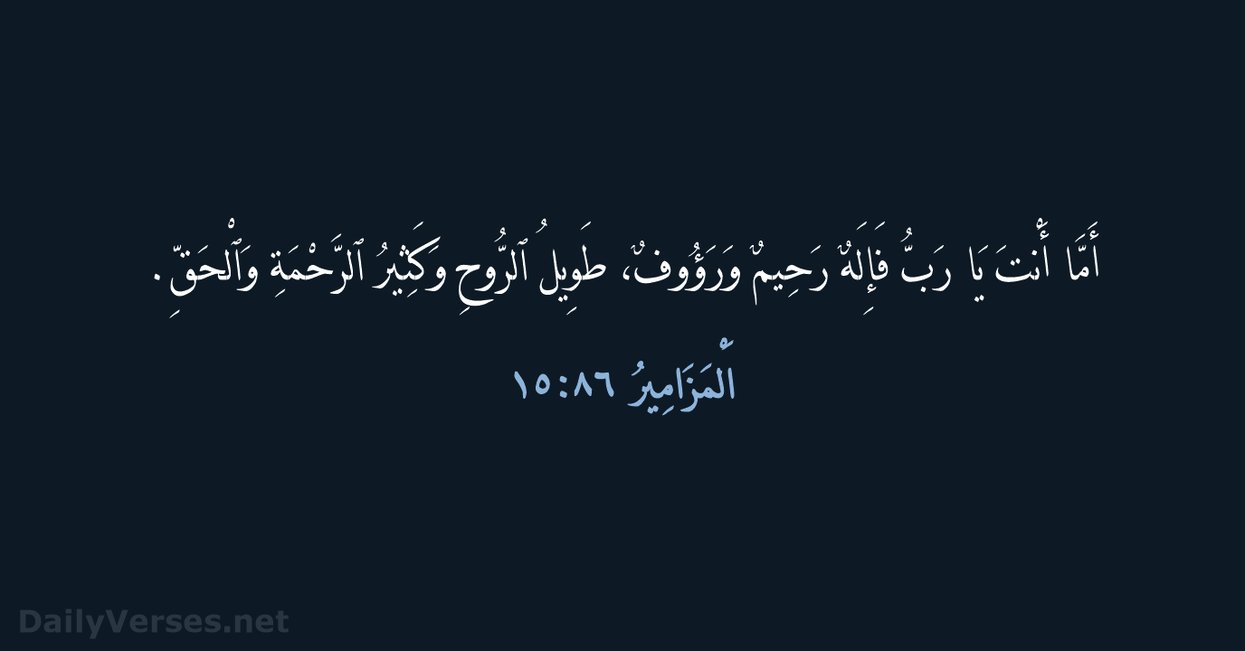 أَمَّا أَنْتَ يَا رَبُّ فَإِلَهٌ رَحِيمٌ وَرَؤُوفٌ، طَوِيلُ ٱلرُّوحِ وَكَثِيرُ ٱلرَّحْمَةِ وَٱلْحَقِّ.