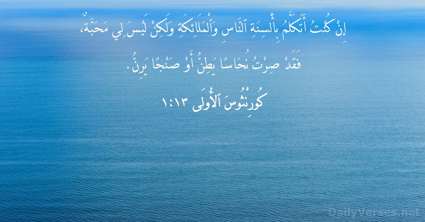 إِنْ كُنْتُ أَتَكَلَّمُ بِأَلْسِنَةِ ٱلنَّاسِ وَٱلْمَلَائِكَةِ وَلَكِنْ لَيْسَ لِي مَحَبَّةٌ، فَقَدْ صِرْتُ نُحَاسًا يَطِنُّ أَوْ صَنْجًا يَرِنُّ.