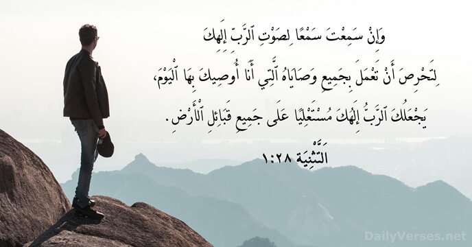 وَإِنْ سَمِعْتَ سَمْعًا لِصَوْتِ ٱلرَّبِّ إِلَهِكَ لِتَحْرِصَ أَنْ تَعْمَلَ بِجَمِيعِ وَصَايَاهُ ٱلَّتِي أَنَا أُوصِيكَ بِهَا ٱلْيَوْمَ، يَجْعَلُكَ ٱلرَّبُّ إِلَهُكَ مُسْتَعْلِيًا عَلَى جَمِيعِ قَبَائِلِ ٱلْأَرْضِ.
