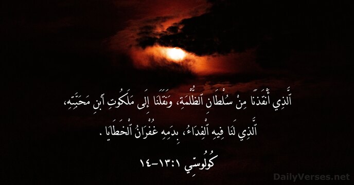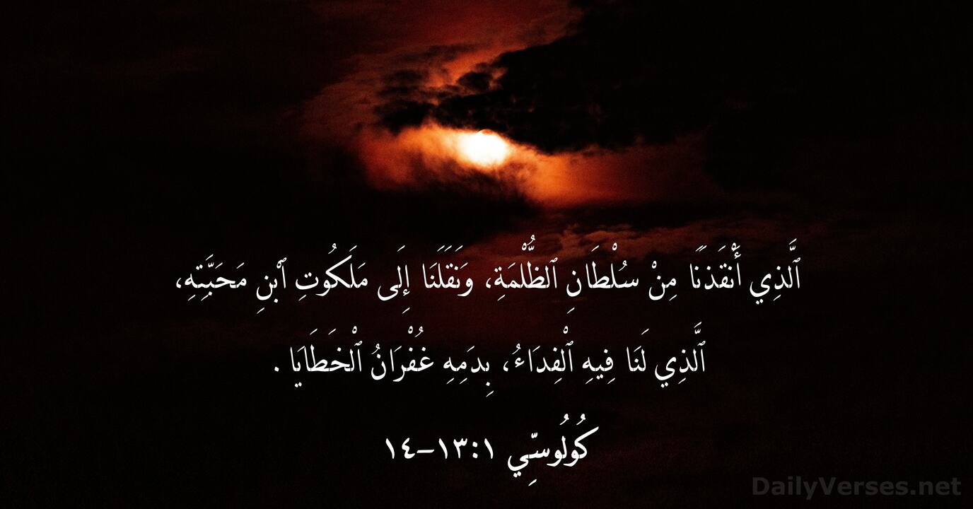ٱلَّذِي أَنْقَذَنَا مِنْ سُلْطَانِ ٱلظُّلْمَةِ، وَنَقَلَنَا إِلَى مَلَكُوتِ ٱبْنِ مَحَبَّتِهِ، ٱلَّذِي لَنَا فِيهِ ٱلْفِدَاءُ، بِدَمِهِ غُفْرَانُ ٱلْخَطَايَا.
