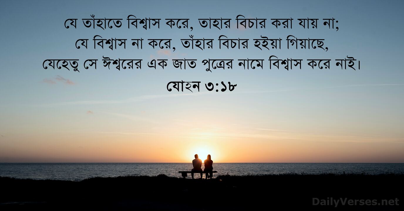 যে তাঁহাতে বিশ্বাস করে, তাহার বিচার করা যায় না; যে বিশ্বাস না করে, তাঁহার বিচার হইয়া গিয়াছে, যেহেতু সে ঈশ্বরের এক জাত পুত্রের নামে বিশ্বাস করে নাই।