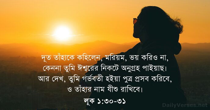 দূত তাঁহাকে কহিলেন, মরিয়ম, ভয় করিও না, কেননা তুমি ঈশ্বরের নিকটে অনুগ্রহ পাইয়াছ। আর দেখ, তুমি গর্ভবতী হইয়া পুত্র প্রসব করিবে, ও তাঁহার নাম যীশু রাখিবে।