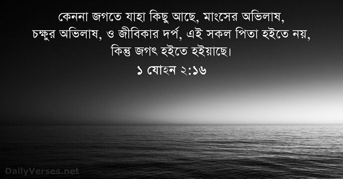 কেননা জগতে যাহা কিছু আছে, মাংসের অভিলাষ, চক্ষুর অভিলাষ, ও জীবিকার দর্প, এই সকল পিতা হইতে নয়, কিন্তু জগৎ হইতে হইয়াছে।