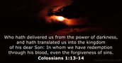 - Who hath delivered us from the power of darkness, and hath translated us into the kingdom of his dear Son: In whom we have redemption through his blood, even the forgiveness of sins.