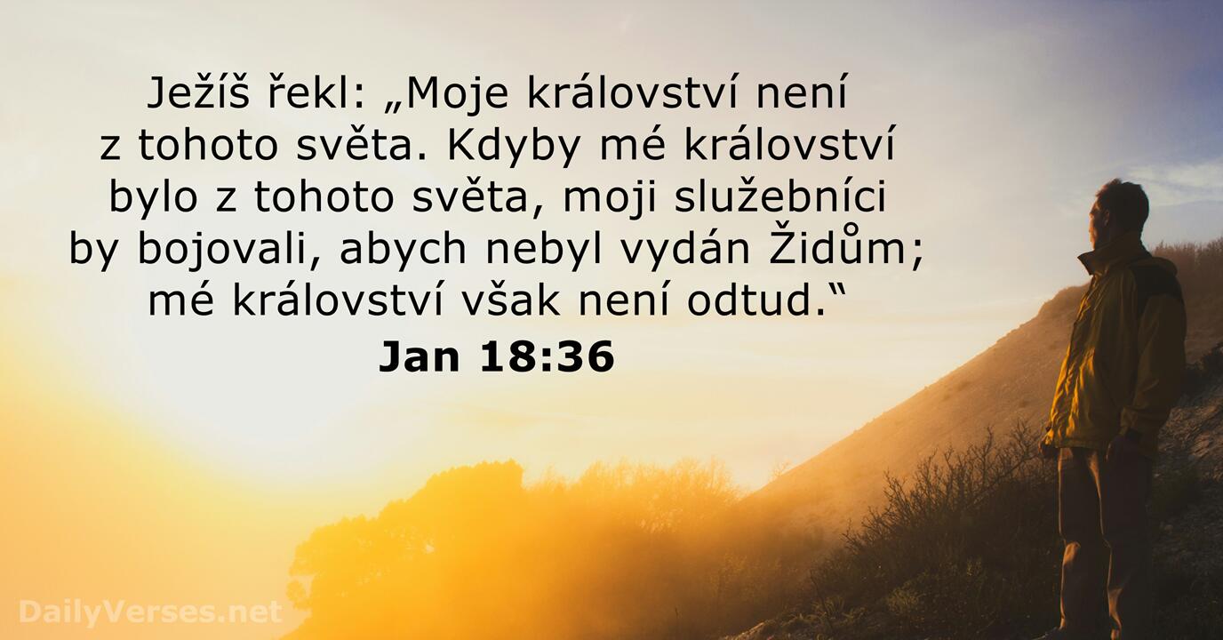 Ježíš řekl: „Moje království není z tohoto světa. Kdyby mé království bylo z tohoto světa, moji služebníci by bojovali, abych nebyl vydán Židům; mé království však není odtud.“