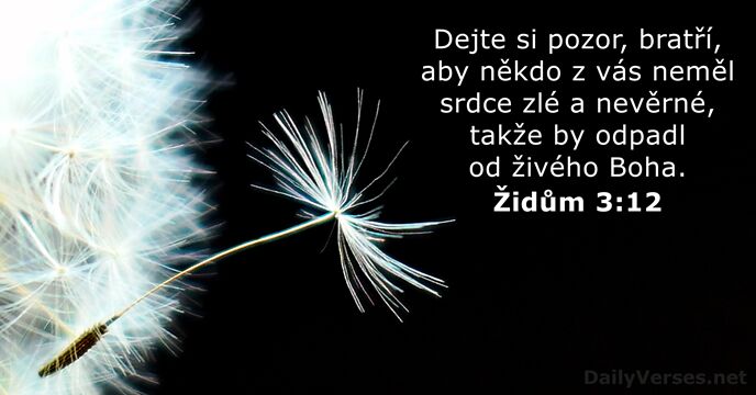 Dejte si pozor, bratří, aby někdo z vás neměl srdce zlé a nevěrné, takže by odpadl od živého Boha.