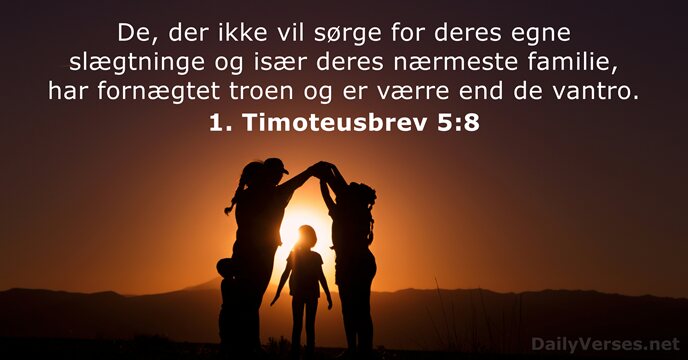Men dersom nogen ikke har Omsorg for sine egne og især for sine Husfæller, han har fornægtet Troen og er værre end en vantro.