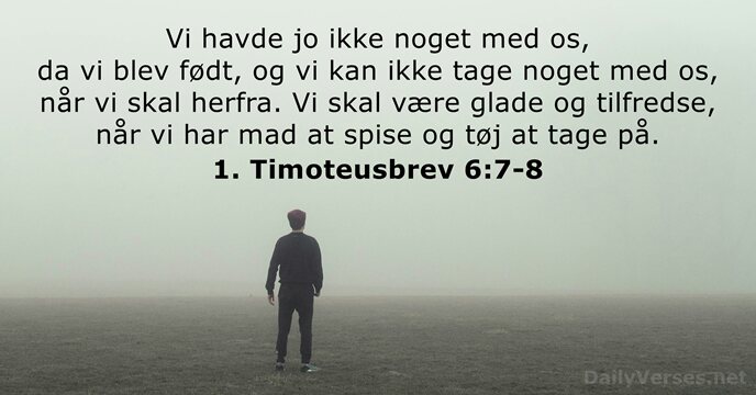 Vi havde jo ikke noget med os, da vi blev født, og vi kan ikke tage noget med os, når vi skal herfra. Vi skal være glade og tilfredse, når vi har mad at spise og tøj at tage på.