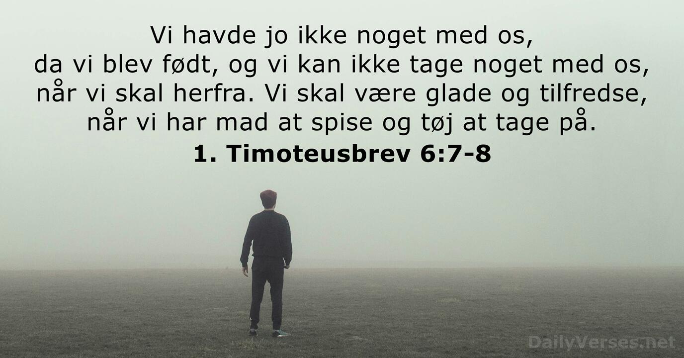 Thi vi have intet bragt ind i Verden, det er da aabenbart, at vi ej heller kunne bringe noget ud derfra. Men naar vi have Føde og Klæder, ville vi dermed lade os nøje.