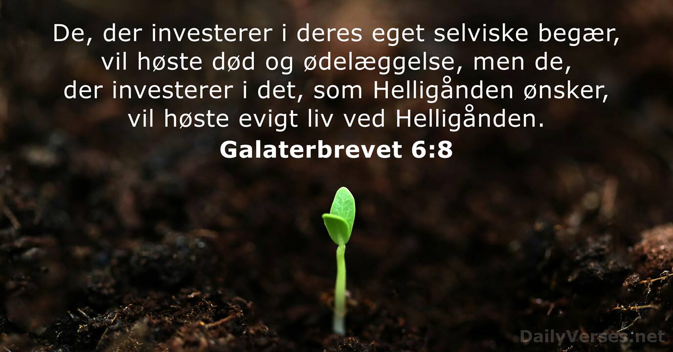 De, der investerer i deres eget selviske begær, vil høste død og ødelæggelse, men de, der investerer i det, som Helligånden ønsker, vil høste evigt liv ved Helligånden.