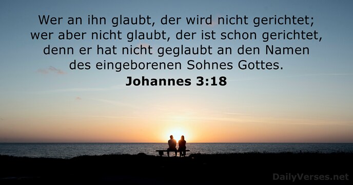 Wer an ihn glaubt, der wird nicht gerichtet; wer aber nicht glaubt, der ist schon gerichtet, denn er glaubt nicht an den Namen des eingeborenen Sohnes Gottes.