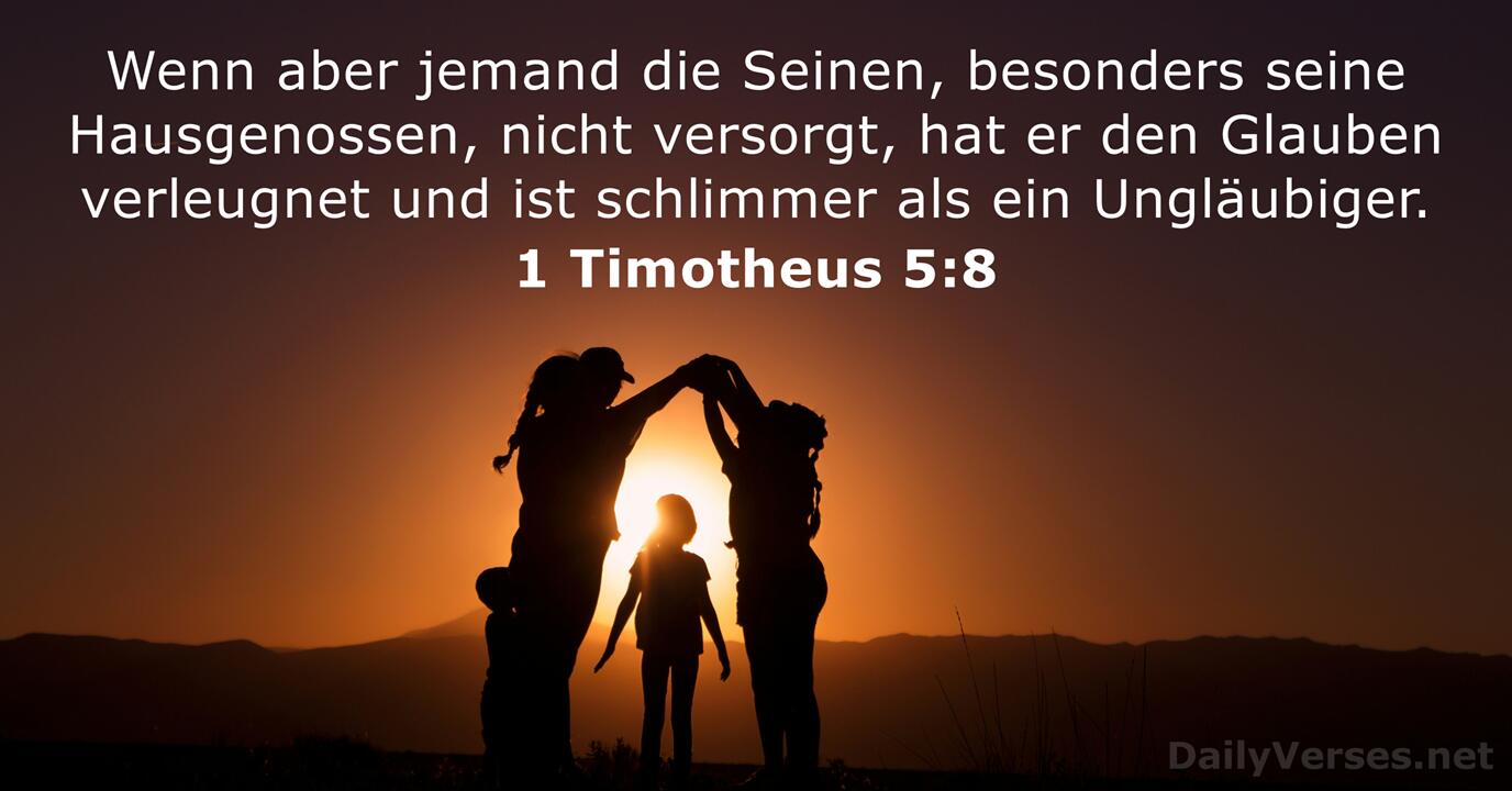 Wenn aber jemand für die Seinen und besonders für die Hausgenossen nicht sorgt, so hat er den Glauben verleugnet und ist schlechter als ein Ungläubiger.