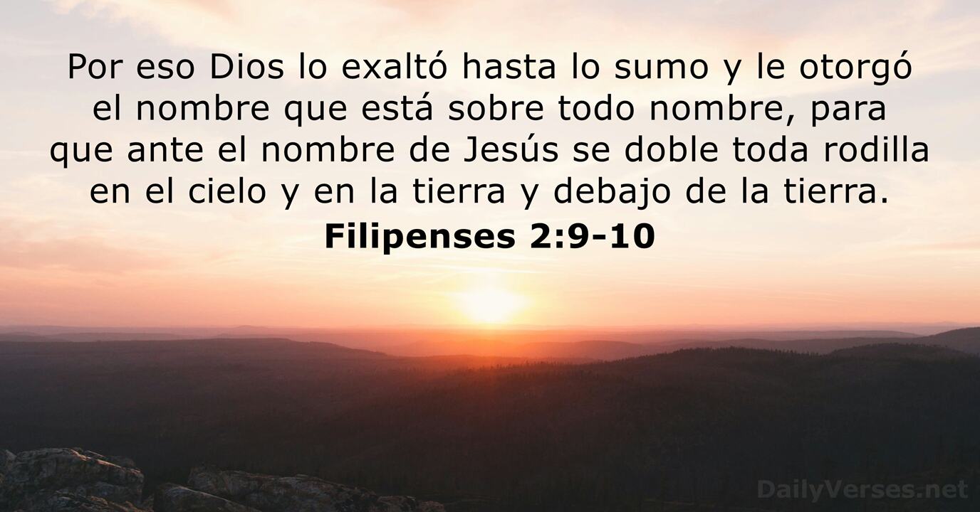 Por eso Dios lo exaltó hasta lo sumo y le otorgó el nombre que está sobre todo nombre, para que ante el nombre de Jesús se doble toda rodilla en el cielo y en la tierra y debajo de la tierra.