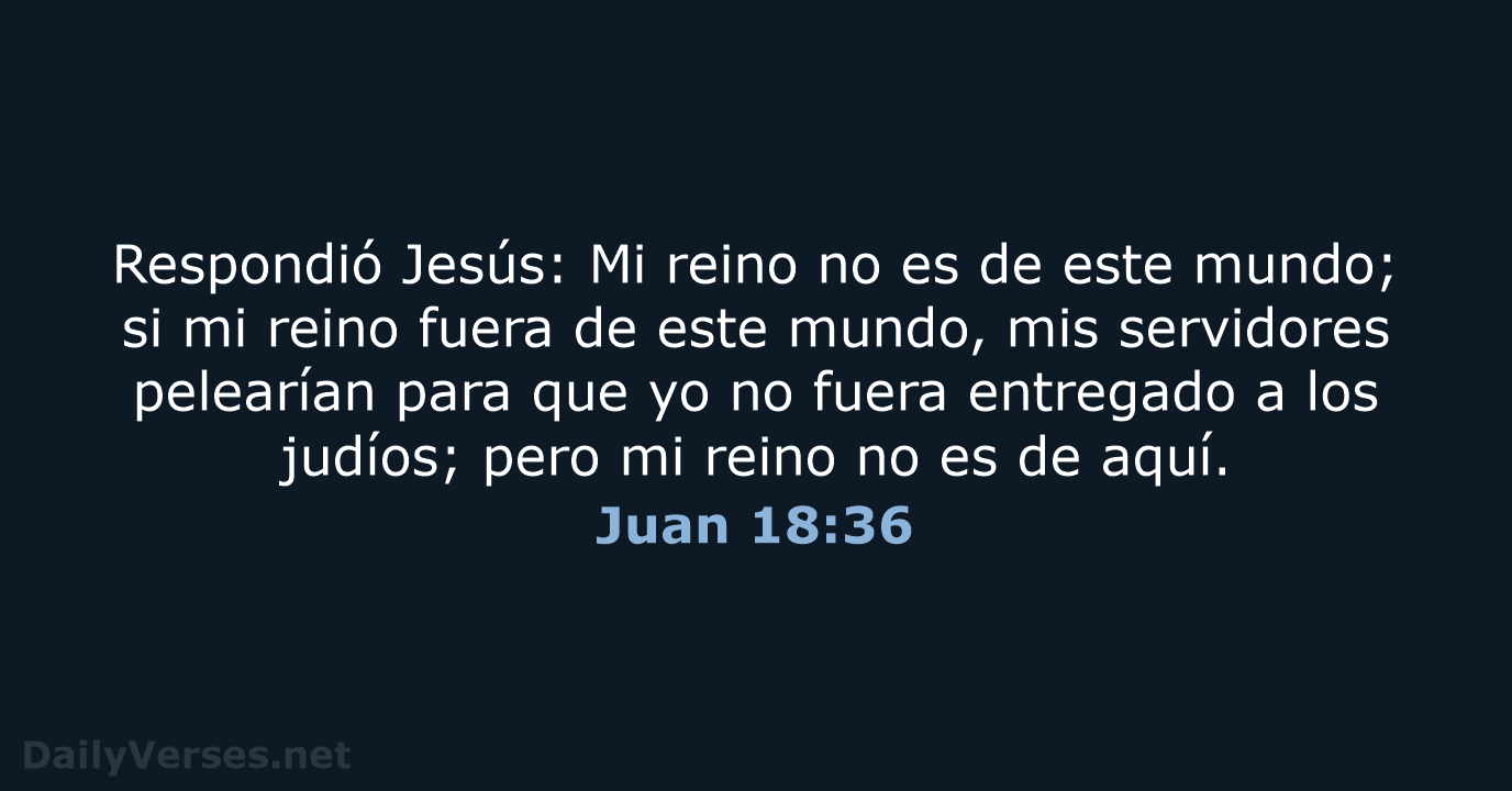 Respondió Jesús: Mi reino no es de este mundo; si mi reino fuera de este mundo, mis servidores pelearían para que yo no fuera entregado a los judíos; pero mi reino no es de aquí.
