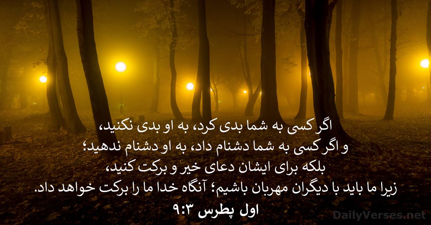 اگر كسی به شما بدی كرد، به او بدی نكنيد، و اگر كسی به شما دشنام داد، به او دشنام ندهيد؛ بلكه برای ايشان دعای خير و بركت كنيد، زيرا ما بايد با ديگران مهربان باشيم؛ آنگاه خدا ما را بركت خواهد داد.
