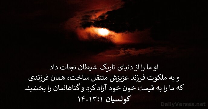 - او ما را از دنيای تاريک شيطان نجات داد و به ملكوت فرزند عزيزش منتقل ساخت، همان فرزندی كه ما را به قيمت خون خود آزاد كرد و گناهانمان را بخشيد.