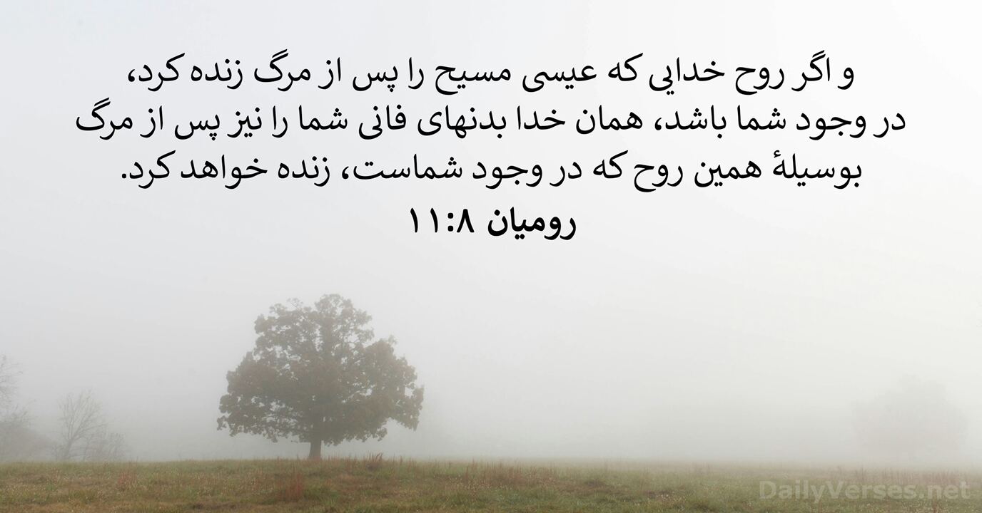 و اگر روح خدايی كه عيسی مسيح را پس از مرگ زنده كرد، در وجود شما باشد، همان خدا بدنهای فانی شما را نيز پس از مرگ بوسيلهٔ همين روح كه در وجود شماست، زنده خواهد كرد.
