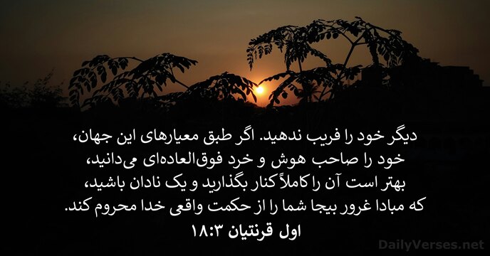 ديگر خود را فريب ندهيد. اگر طبق معيارهای اين جهان، خود را صاحب هوش و خرد فوقالعادهای میدانيد، بهتر است آن را كاملاً كنار بگذاريد و يک نادان باشيد، كه مبادا غرور بيجا شما را از حكمت واقعی خدا محروم كند.