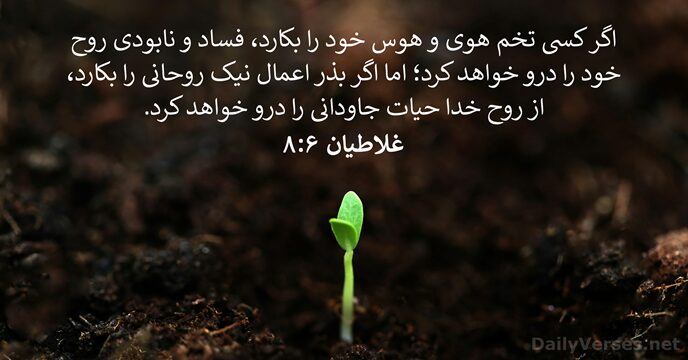 اگر كسی تخم هوی و هوس خود را بكارد، فساد و نابودی روح خود را درو خواهد كرد؛ اما اگر بذر اعمال نيک روحانی را بكارد، از روح خدا حيات جاودانی را درو خواهد كرد.