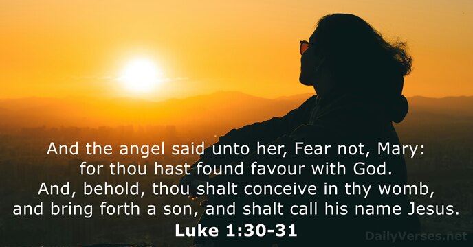 - And the angel said unto her, Fear not, Mary: for thou hast found favour with God. And, behold, thou shalt conceive in thy womb, and bring forth a son, and shalt call his name Jesus.