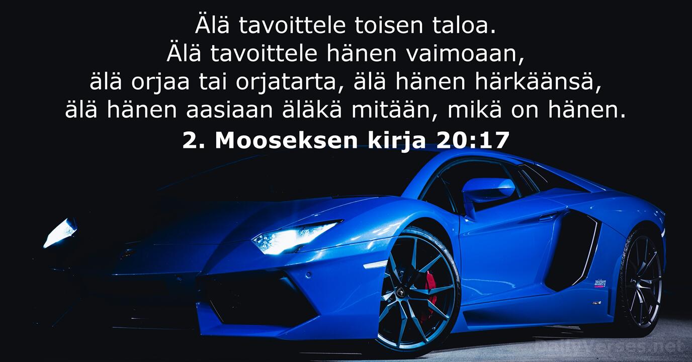 Älä tavoittele toisen taloa. Älä tavoittele hänen vaimoaan, älä orjaa tai orjatarta, älä hänen härkäänsä, älä hänen aasiaan äläkä mitään, mikä on hänen.