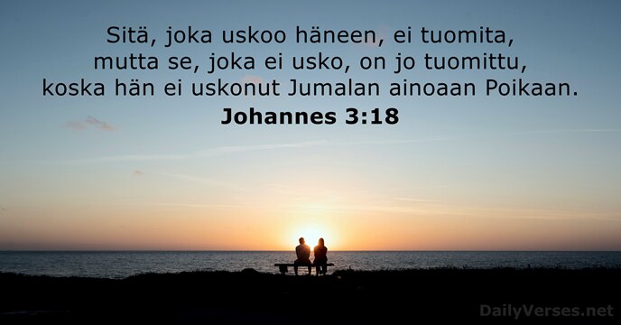 Sitä, joka uskoo häneen, ei tuomita, mutta se, joka ei usko, on jo tuomittu, koska hän ei uskonut Jumalan ainoaan Poikaan.