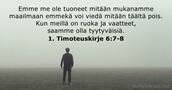 - Emme me ole tuoneet mitään mukanamme maailmaan emmekä voi viedä mitään täältä pois. Kun meillä on ruoka ja vaatteet, saamme olla tyytyväisiä.