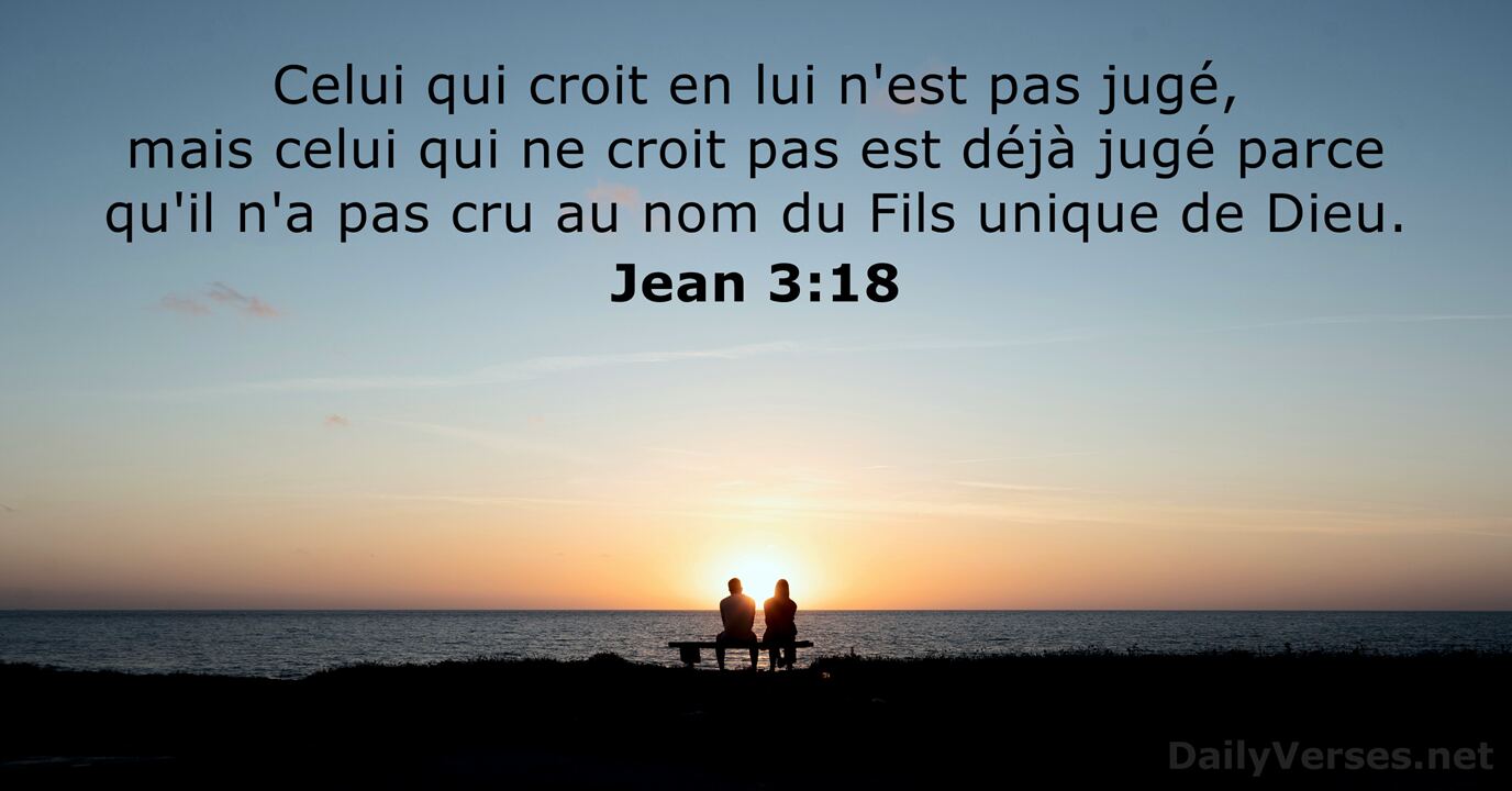 Celui qui met sa confiance en lui n’est pas condamné, mais celui qui n’a pas foi en lui est déjà condamné, car il n’a pas mis sa confiance en la personne du Fils unique de Dieu.