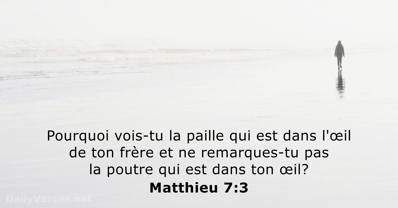 Pourquoi vois-tu la paille qui est dans l'œil de ton frère et ne remarques-tu pas la poutre qui est dans ton œil?