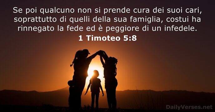 Se poi qualcuno non si prende cura dei suoi cari, soprattutto di quelli della sua famiglia, costui ha rinnegato la fede ed è peggiore di un infedele.