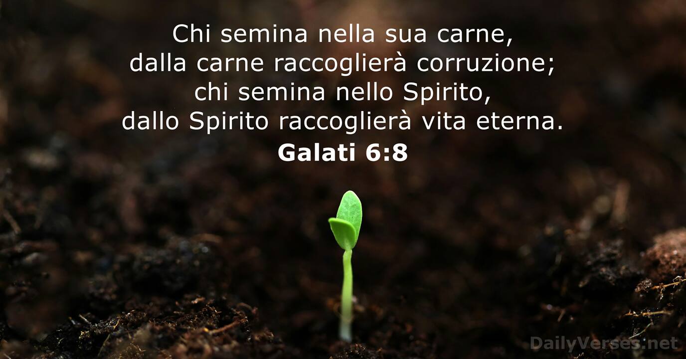 Perché chi semina per la sua carne, mieterà corruzione dalla carne; ma chi semina per lo Spirito mieterà dallo Spirito vita eterna.