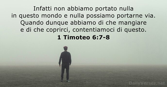 - Infatti non abbiamo portato nulla in questo mondo e nulla possiamo portarne via. Quando dunque abbiamo di che mangiare e di che coprirci, contentiamoci di questo.