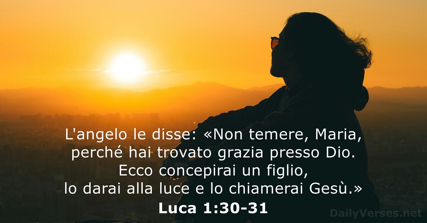 L’angelo le disse: «Non temere, Maria, perché hai trovato grazia presso Dio. Ecco, tu concepirai e partorirai un figlio, e gli porrai nome Gesù.»