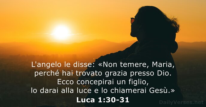 - L'angelo le disse: «Non temere, Maria, perché hai trovato grazia presso Dio. Ecco concepirai un figlio, lo darai alla luce e lo chiamerai Gesù.»
