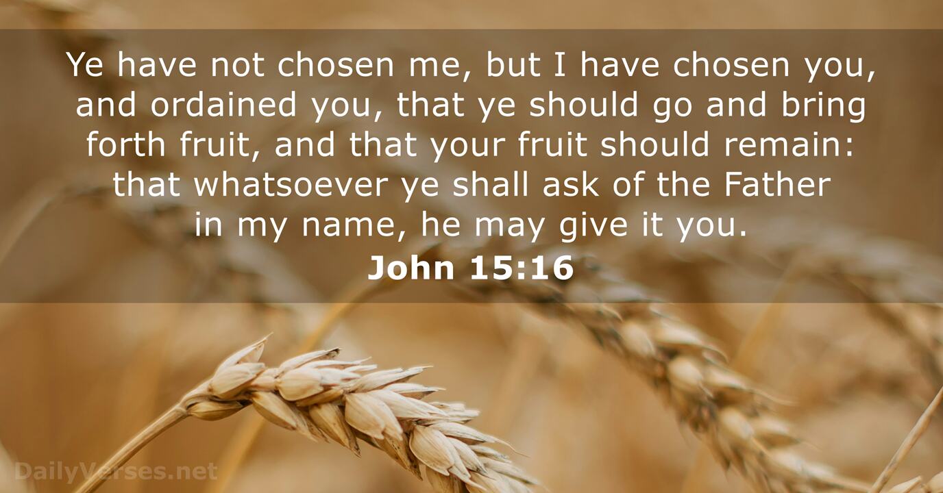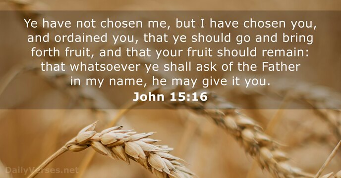 Ye have not chosen me, but I have chosen you, and ordained you, that ye should go and bring forth fruit, and that your fruit should remain: that whatsoever ye shall ask of the Father in my name, he may give it you.