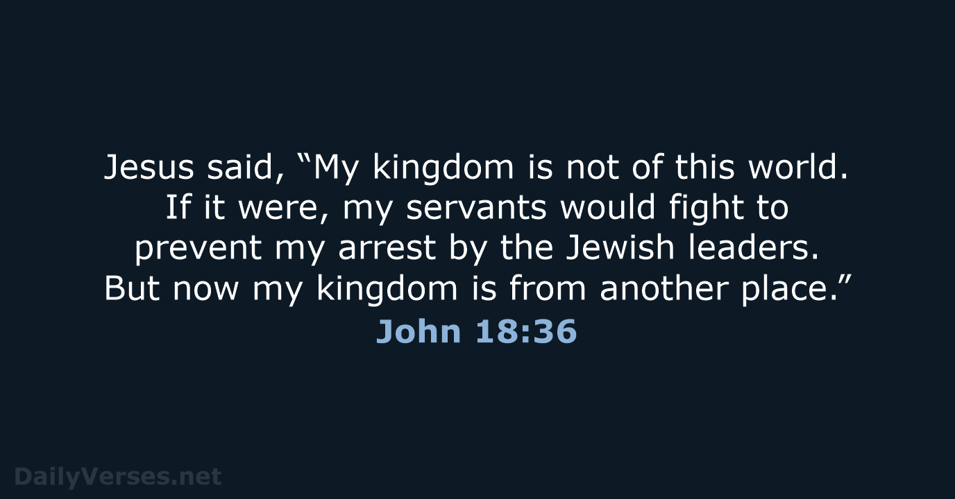 Jesus answered, “My kingdom is not of this world. If my kingdom were of this world, my servants would have been fighting, that I might not be delivered over to the Jews. But my kingdom is not from the world.”