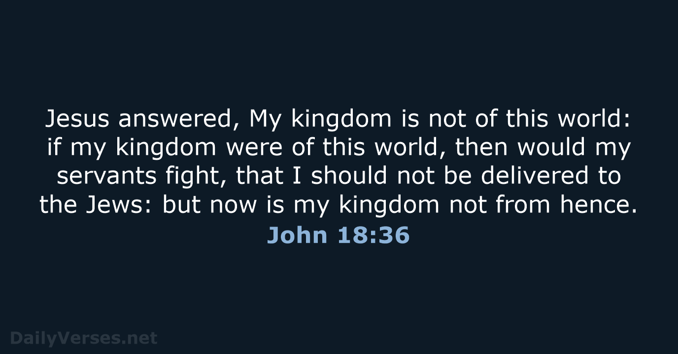 Jesus answered, My kingdom is not of this world: if my kingdom were of this world, then would my servants fight, that I should not be delivered to the Jews: but now is my kingdom not from hence.