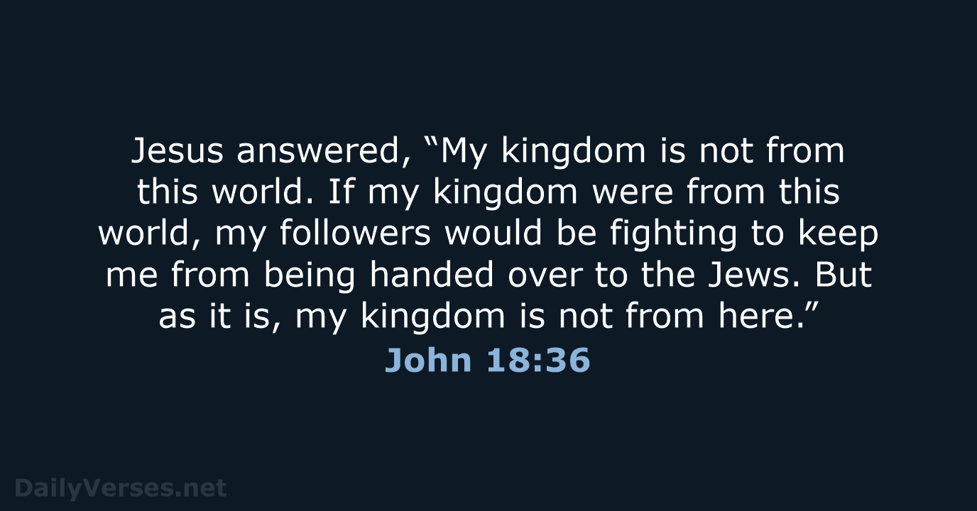 Jesus answered, “My kingdom is not of this world. If my kingdom were of this world, my servants would have been fighting, that I might not be delivered over to the Jews. But my kingdom is not from the world.”