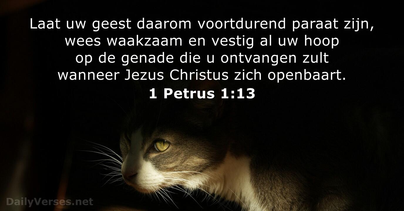 Laat uw geest daarom voortdurend paraat zijn, wees waakzaam en vestig al uw hoop op de genade die u ontvangen zult wanneer Jezus Christus zich openbaart.