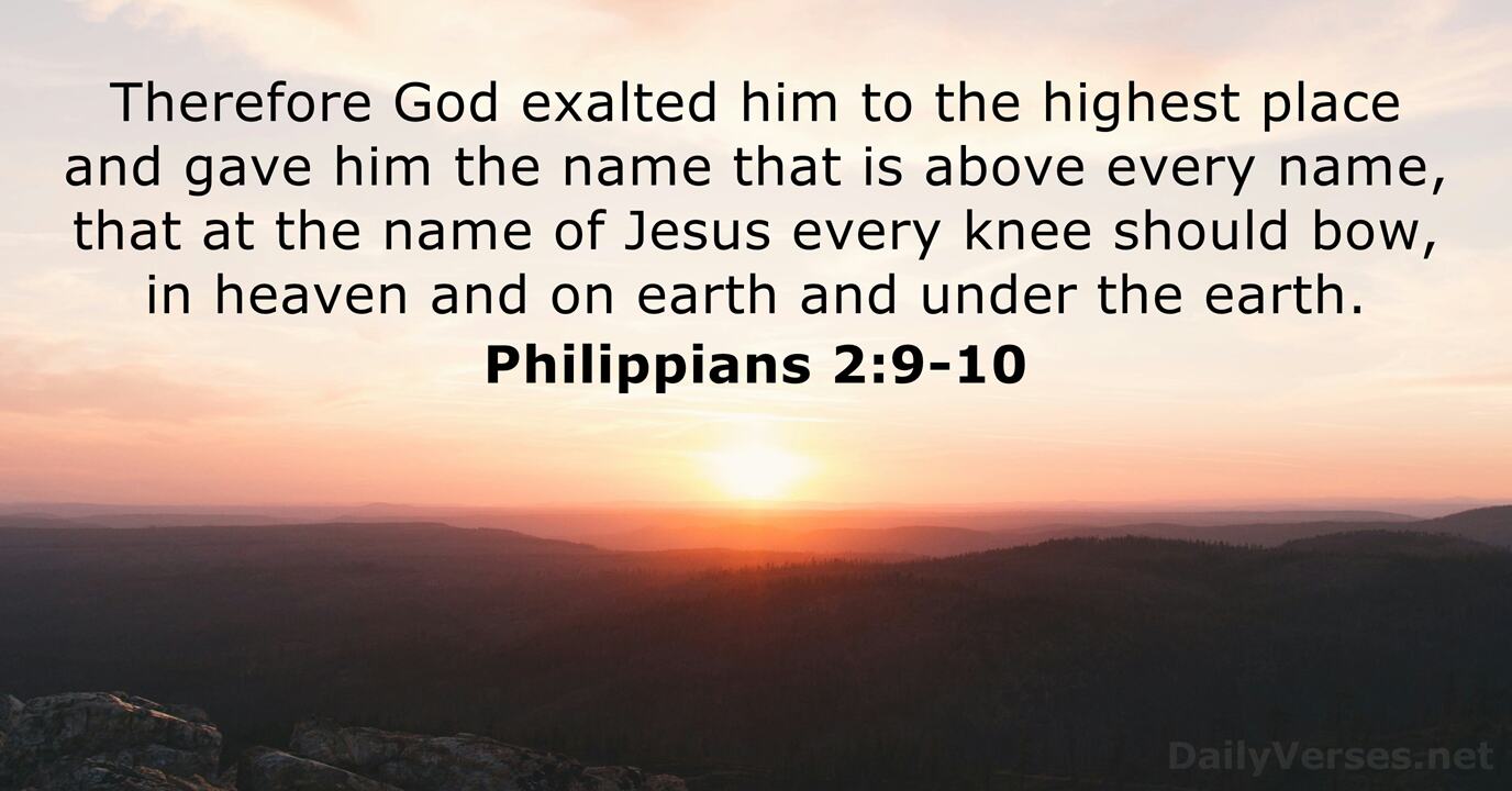Therefore God has highly exalted him and bestowed on him the name that is above every name, so that at the name of Jesus every knee should bow, in heaven and on earth and under the earth.
