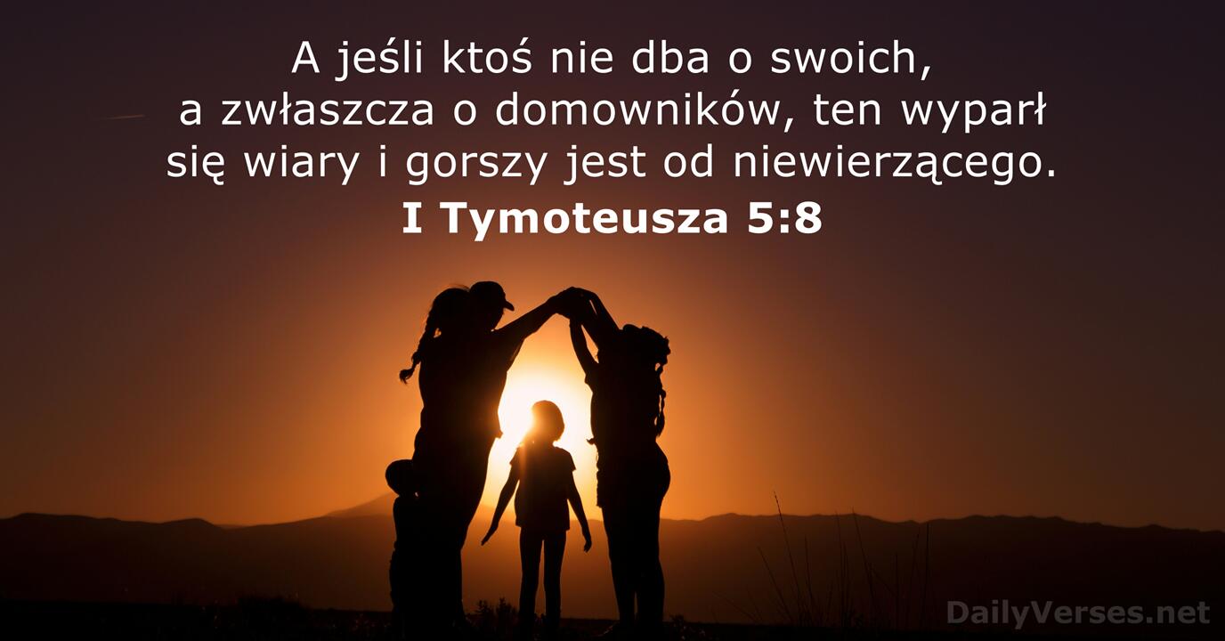 A jeśli ktoś nie dba o swoich, a zwłaszcza o domowników, ten wyparł się wiary i gorszy jest od niewierzącego.